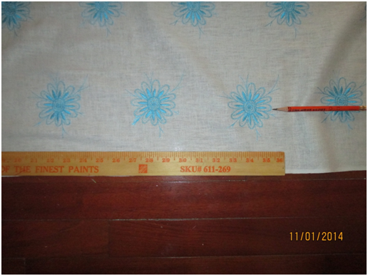 I ran into a dilemma with the material for the cushions.  This is the material that I really liked, but I was buying the material with my 50% off coupons, which were valid during different time-frames.  I got the curtain material one day, and then went back a couple of days later to get the cushions.  Had to wait till the following Sunday for the last 50% coupon to take effect, but by then this material was no longer available.  I looked all over the store, not just where I originally located it; looked online through JoAnn’s, and even went to another store location.  No luck.  That meant having to look for other material for the cushions.